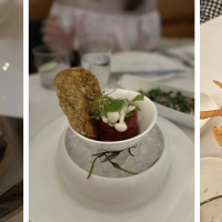 Grilled Faroe Island Salmon, Chestnut Puree, Roasted Celeriac & Lady Apples Citrus Gremolata, Fine Herbs