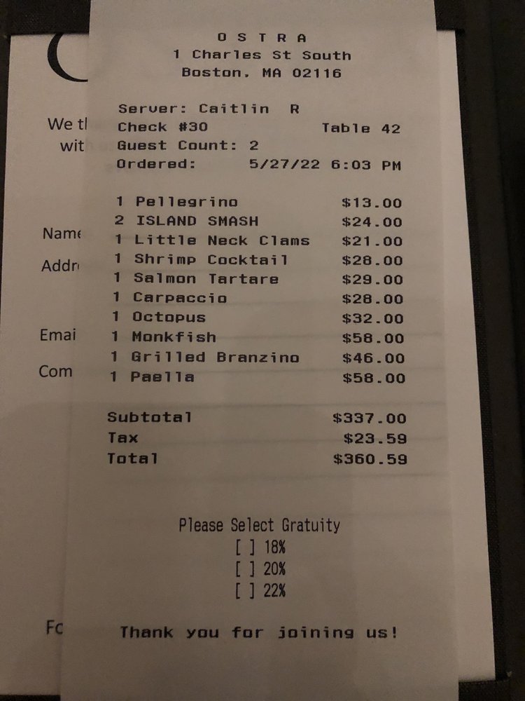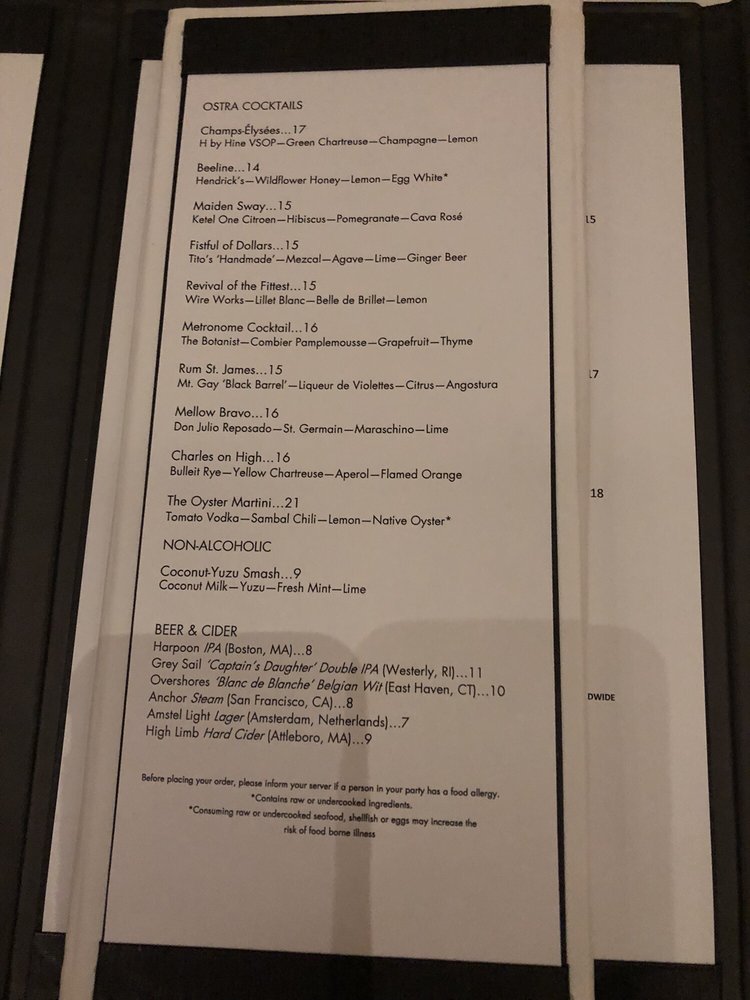 Introducing Ostra, a seafood restaurant in Boston that offers an upscale and classy dining experience. Known for its excellent service and top-notch ambiance, Ostra provides a variety of vegan and vegetarian options. Their menu boasts dishes like Crispy Native Oyster, Ricotta Gnocchetti with Maine Lobster, and Risotto with Alaskan King Crab. The seafood paella and seafood risotto are crowd favorites, bursting with flavor. The restaurant also offers unique dessert options like Snow Egg Meringue with Lemon Curd Mousse. Ostra is the perfect place for a special occasion, with strong cocktails and a stellar wine list. With meticulous attention to detail in every dish and a modern atmosphere, Ostra is a must-visit for seafood enthusiasts seeking a high-end dining experience in Boston.